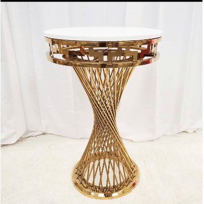 SMALL SWIRL CAKE TABLE GOLD (28" H x 19"W)